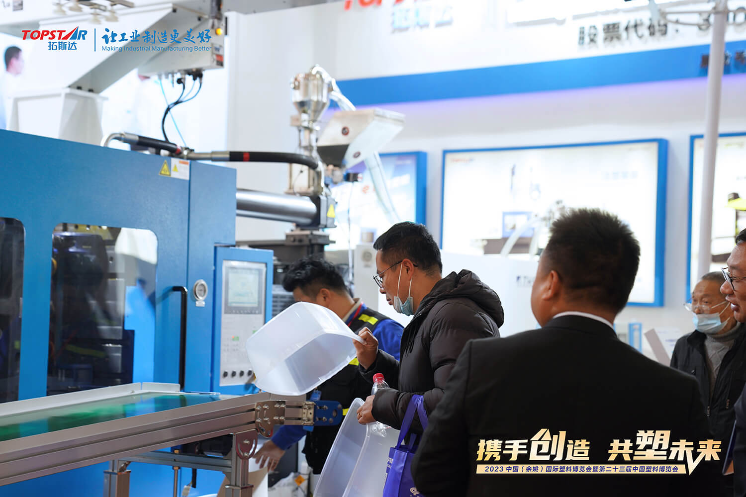 余姚塑博會(huì)期間,拓斯達(dá)攜TH550、TM170Ⅱ等注塑自動(dòng)化裝備登陸。現(xiàn)場(chǎng)展示深腔收納箱塑型工藝方案和可循環(huán)使用快餐盒工藝方案。精準(zhǔn)、穩(wěn)定的注塑裝備與高效的配套輔機(jī)協(xié)同運(yùn)作,成品率高,質(zhì)量穩(wěn)定,吸引客商駐足交流。