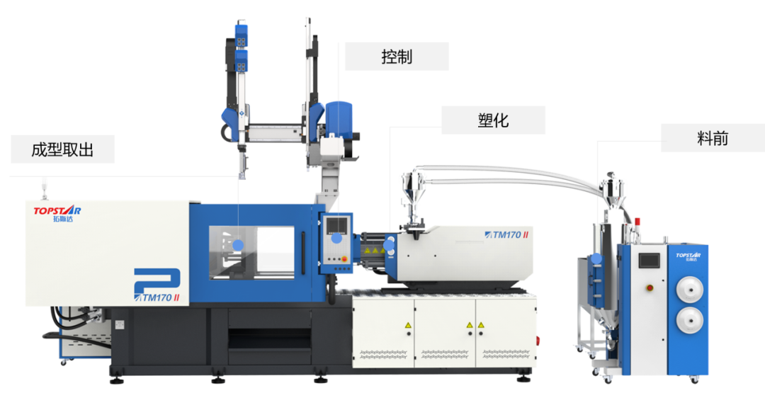 此外,拓斯達(dá)TS注塑機(jī)搭配自研控制系統(tǒng),實(shí)現(xiàn)主機(jī)、輔機(jī)、自動(dòng)化配套通訊,對(duì)整個(gè)注塑工序?qū)崿F(xiàn)一體化;蘭海濤表示,采用拓斯達(dá)的自研系統(tǒng)集成通訊成為“工序一體機(jī)”,可實(shí)現(xiàn)了機(jī)械手和開(kāi)模工序的同步聯(lián)動(dòng),通過(guò)提前到位和精度補(bǔ)償功能,縮短了成型周期,提高了生產(chǎn)效率。機(jī)械手能夠更快速且準(zhǔn)確地抓取產(chǎn)品,減少了異常報(bào)警和設(shè)備維修次數(shù),進(jìn)一步提高了生產(chǎn)效率。