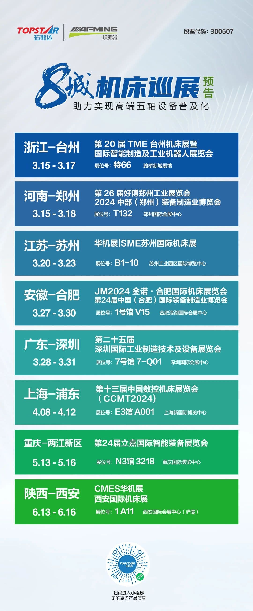 今年五軸聯(lián)動(dòng)數(shù)控機(jī)床還將參與浙江臺(tái)州、河南鄭州、江蘇蘇州、廣東深圳、上海、重慶等八城的工業(yè)母機(jī)巡展,與各地客戶近距離交流,傾聽(tīng)客戶的反饋和需求,進(jìn)一步優(yōu)化產(chǎn)品的應(yīng)用場(chǎng)景和提升用戶體驗(yàn)。