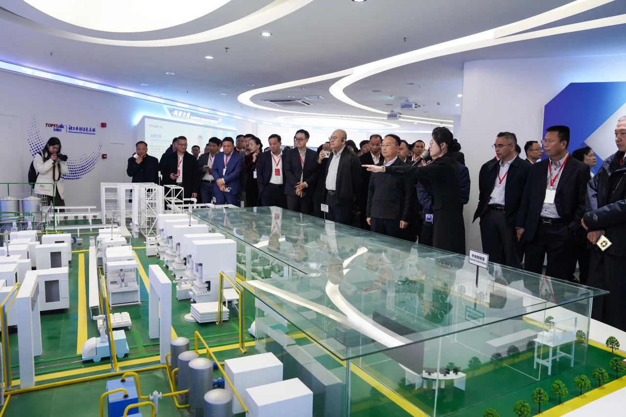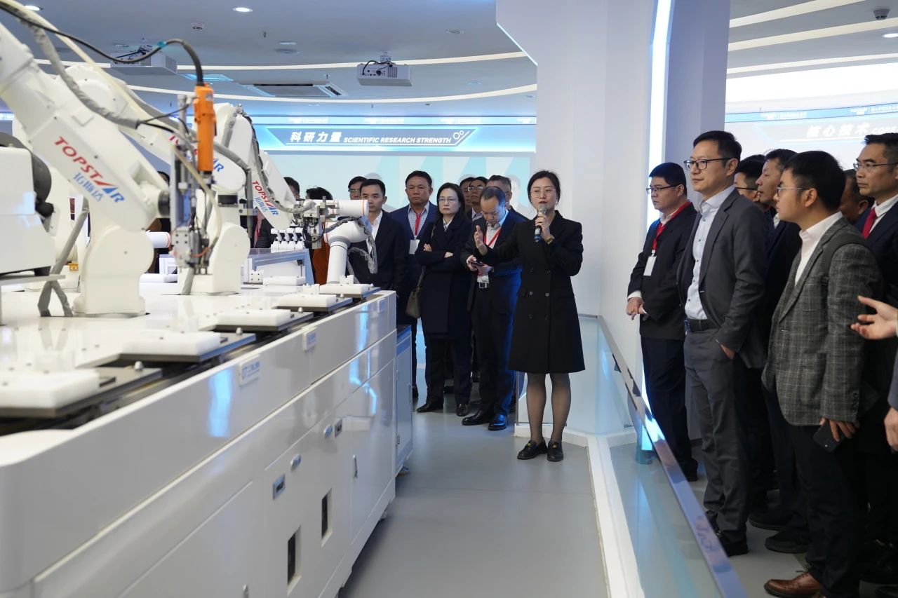 與此同時,由全國工商聯(lián)領(lǐng)導、省委相關(guān)部門負責人、港澳商會代表及省內(nèi)重點民營企業(yè)代表等240余人組成的廣東省民營企業(yè)建設現(xiàn)代化產(chǎn)業(yè)體系推進大會參觀考察團蒞臨拓斯達實地調(diào)研。通過車間生產(chǎn)線、研發(fā)實驗室及智能工廠解決方案展廳,考察團詳細了解拓斯達以工業(yè)機器人、五軸聯(lián)動數(shù)控機床、注塑機為核心的智能裝備,以及控制、伺服、視覺三大核心技術(shù),打造以核心技術(shù)驅(qū)動的智能硬件平臺。